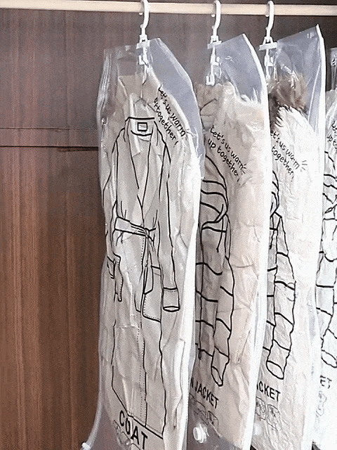 Nuestras bolsas al vacío te permiten reducir el tamaño de tus prendas hasta 10 veces, liberando espacio en tu armario ten tu ropa protegida y organizada