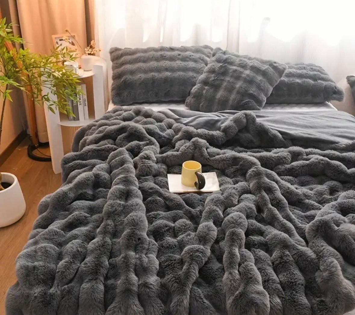 COBIJA DELUX PIEL DE CONEJO EFECTO BURBUJA