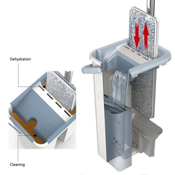 Nuestro trapeador Gracias a su caneca escurridora y secadora puedes eliminar el exceso de agua con un simple movimiento. para una limpieza de pisos secos y seguros. Simple, rápido y efectivo.